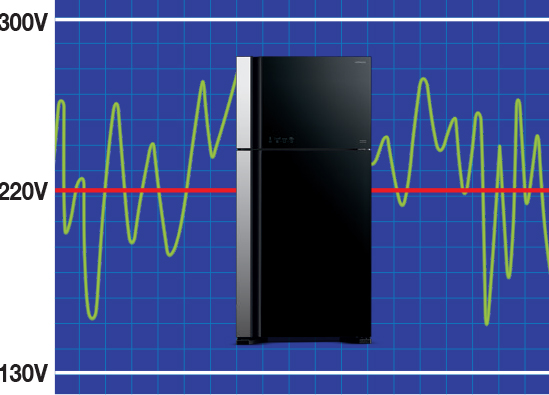 Cools under wide voltage fluctuation 130V-300V.**Tested by Hitachi. Operating condition may differ depending on situations